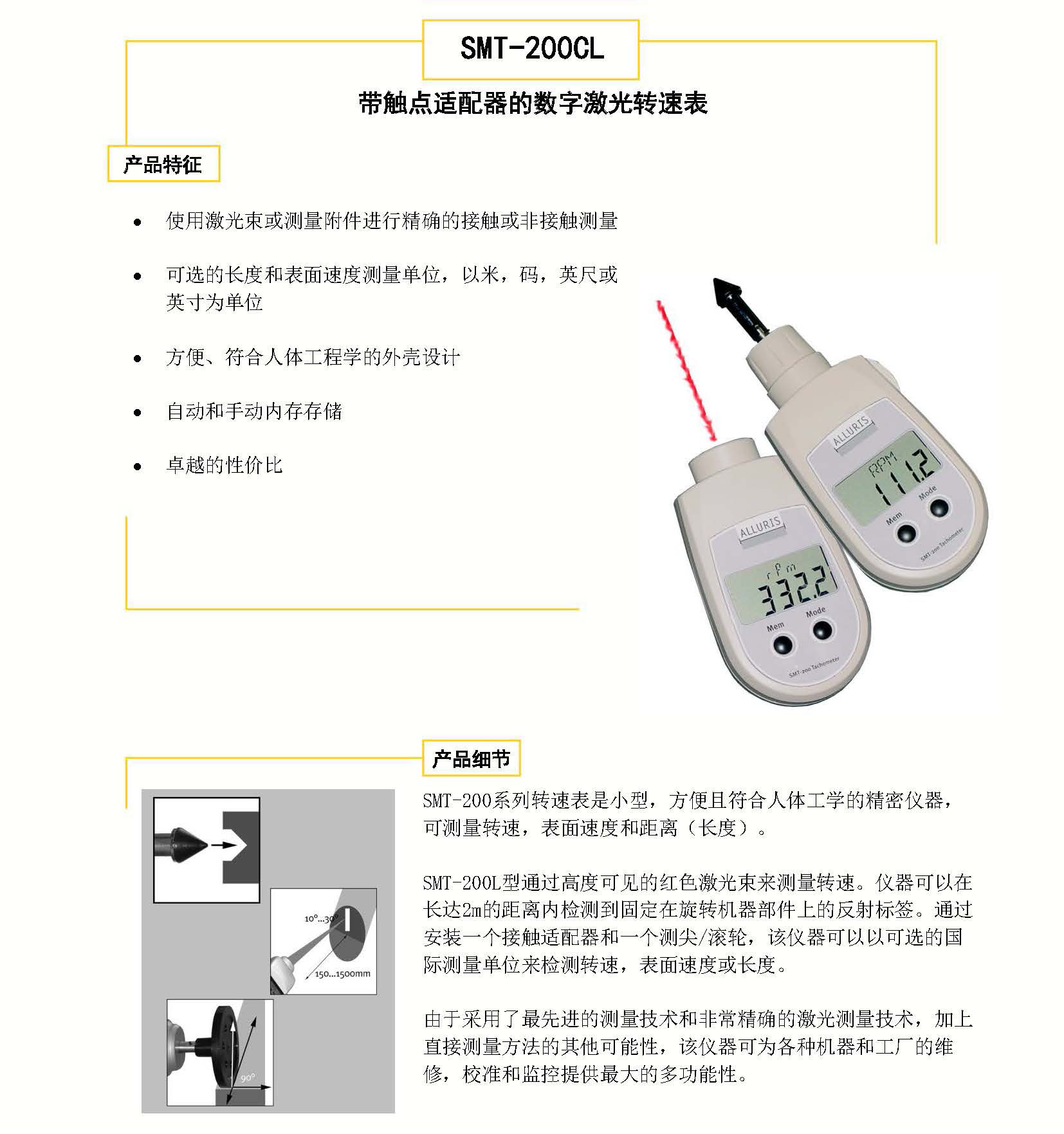 - 帶觸點适配器(qì)的(de)數(shù)字激光(guāng)轉速表SMT-200CL